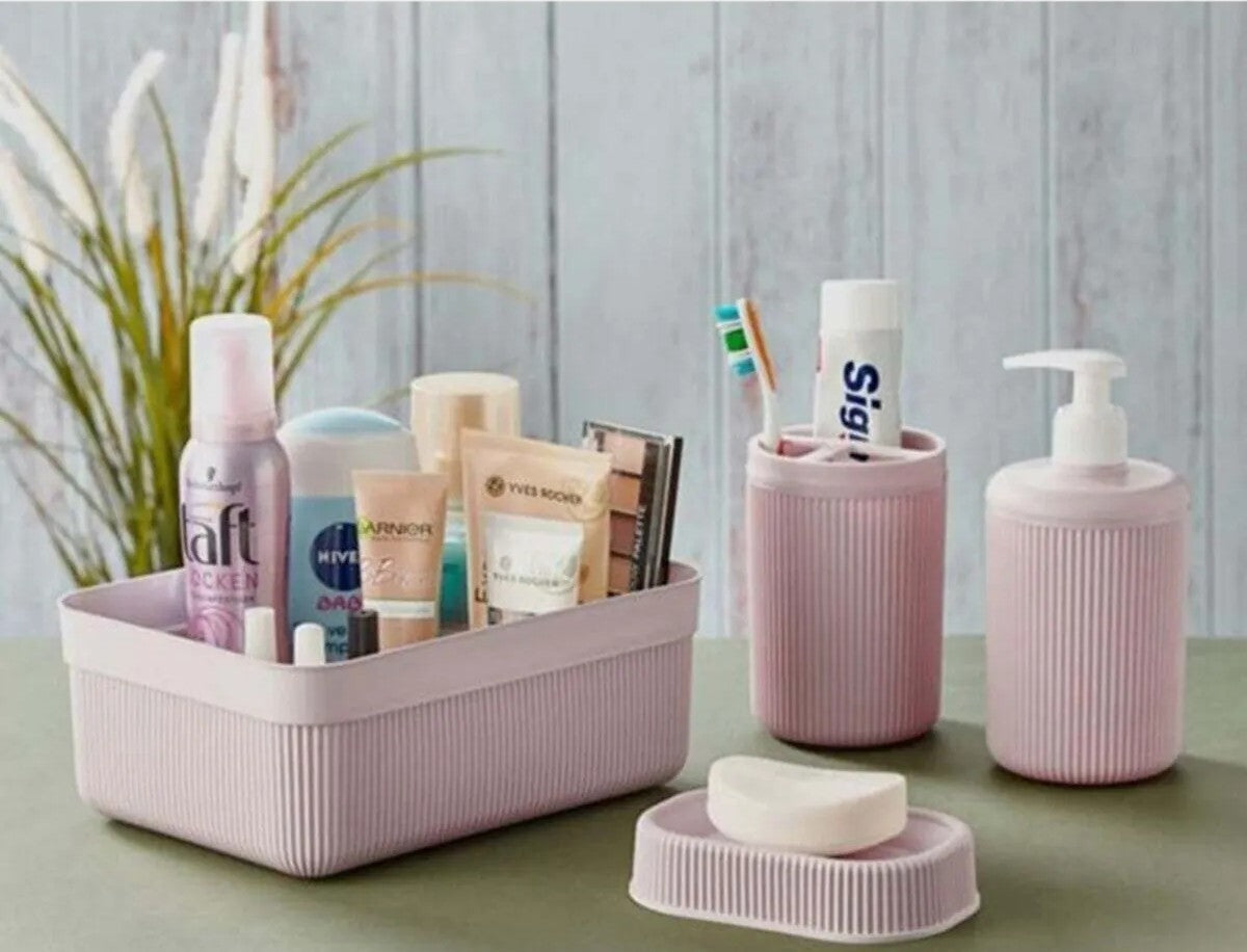 Breng orde en stijl in uw badkamer met deze complete 4-delige accessoireset – praktisch én elegant!