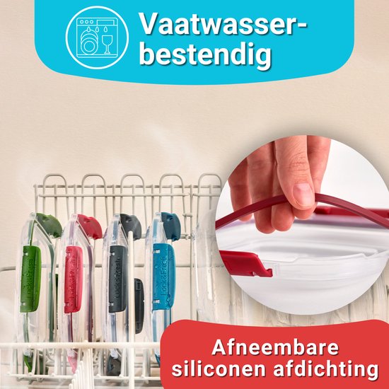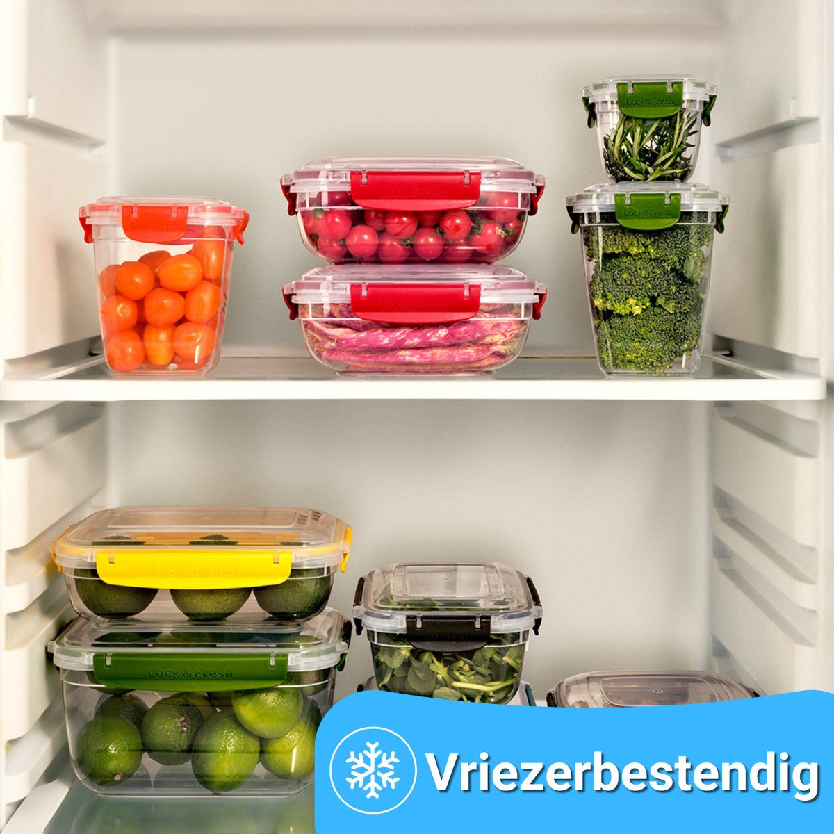 De slimme siliconen ring en luchtdichte vergrendeling zorgen ervoor dat je eten tot wel 2x langer vers en knapperig blijft.