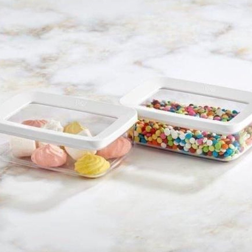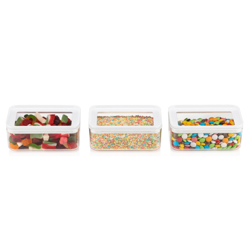 Dankzij de rechthoekige, stapelbare vorm bespaar je kostbare ruimte in je keukenkastjes en houd je alles overzichtelijk georganiseerd. De luchtdichte witte deksels met siliconen rand zorgen ervoor dat je etenswaren langer vers blijven en beschermd zijn tegen vocht en geuren.