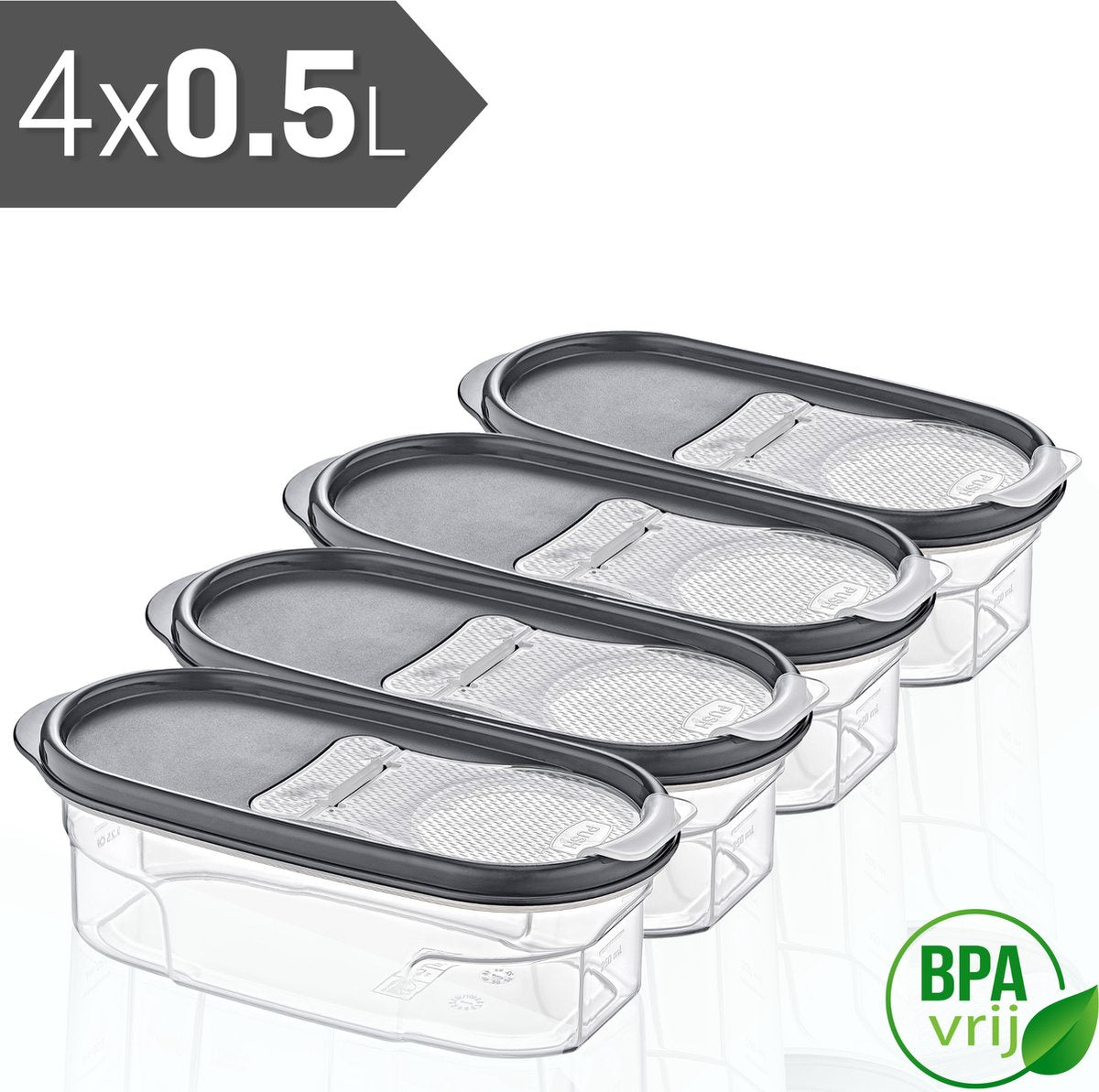 Emhouse Voorraadpotten Set van 4x0.5L Antraciet Kunststof