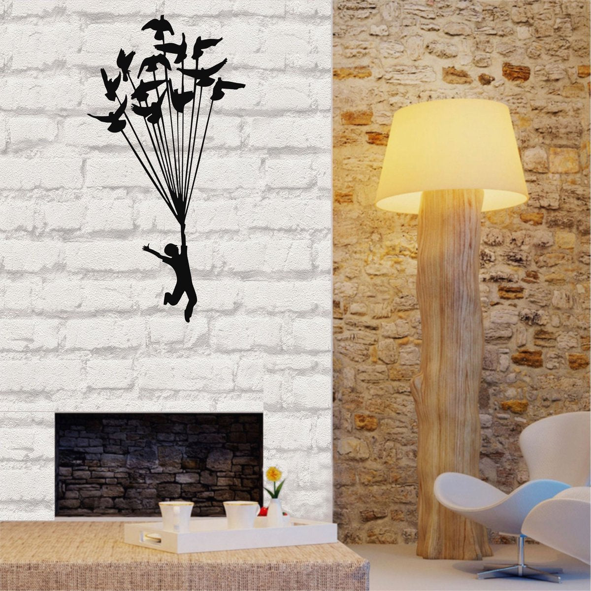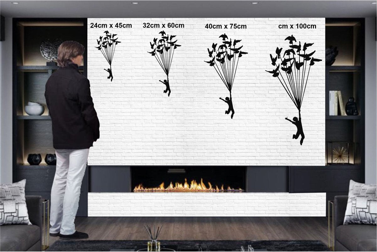Wanddecoratie Kind met Ballonnen Zwart 40x75cm