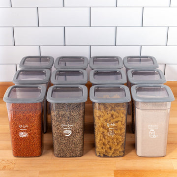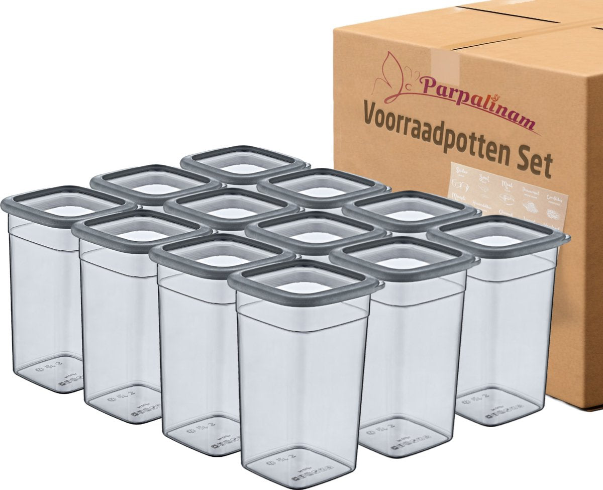 Voorraadbussen Set 1,4L 12-delig – Luchtdicht met Deksel – Antraciet